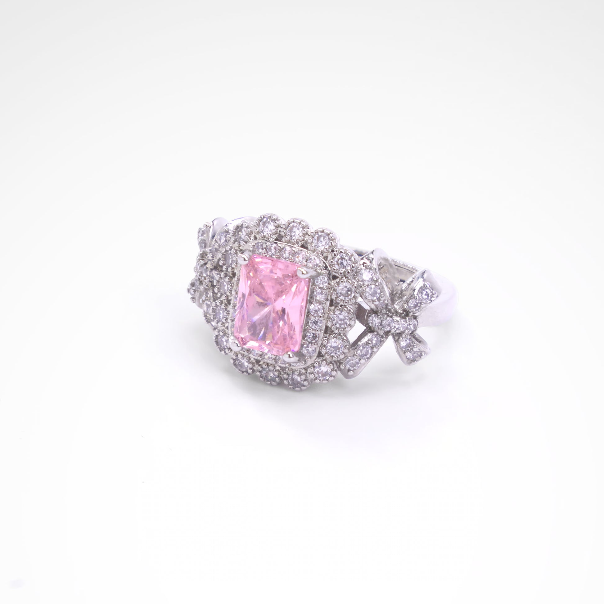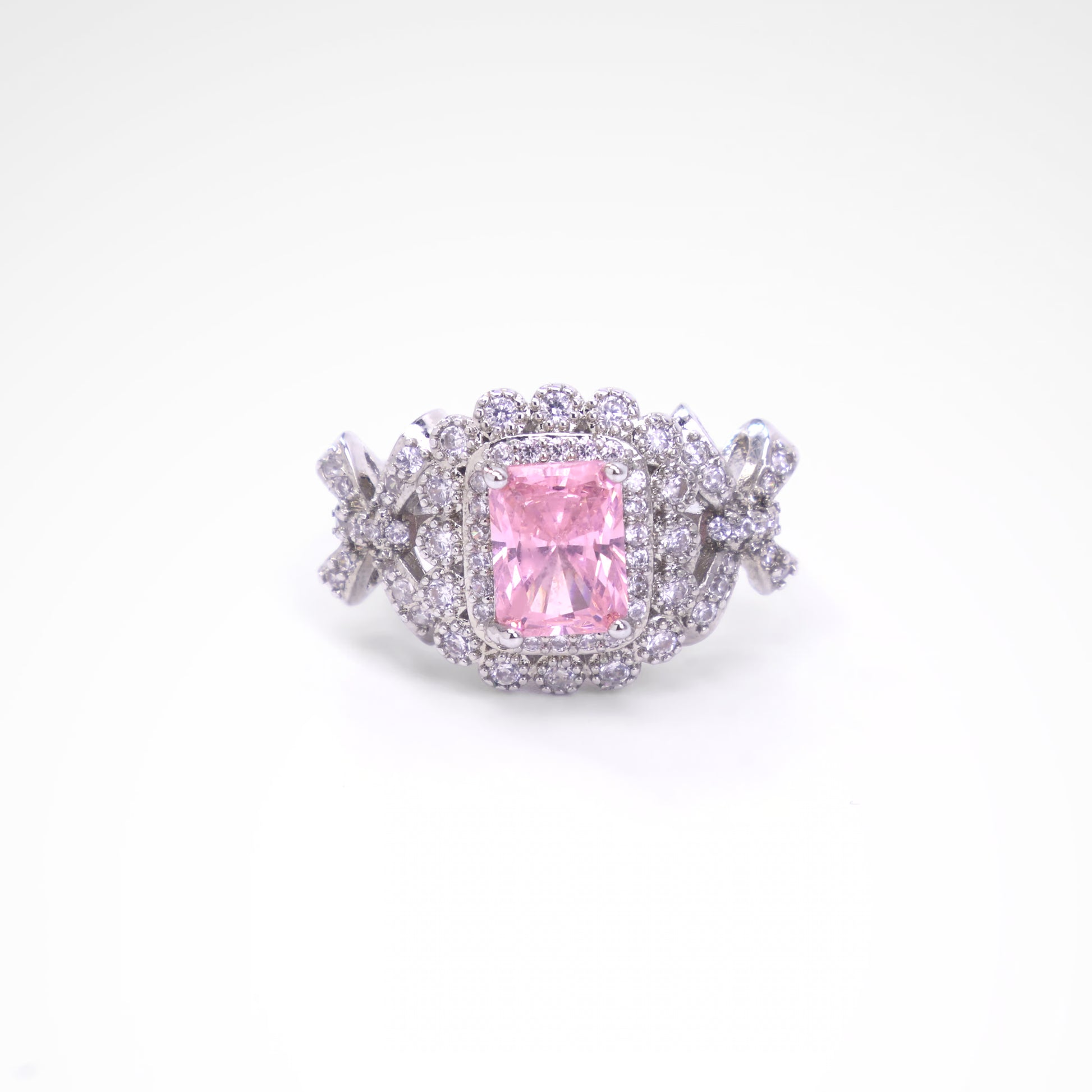 Indulge in the Blush Enchantment Halo Ring, inspired by the soft pink hues of desert sunsets, whispering tales of romance and opulence for the graceful Emirati woman. This pink zircon ring features a luminous radiant-cut pink zircon centerpiece, framed by dazzling white zircon accents in a bow-adorned halo, set in durable white gold-plated copper for enduring sparkle. Ideal for weddings, Eid festivities, or everyday luxury, it fuses heritage elegance with modern allure. Secure this captivating women's halo ring now.